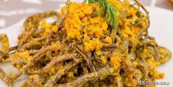 材料:茶樹菇、咸蛋黃、雞蛋、糖、生粉、鹽、油