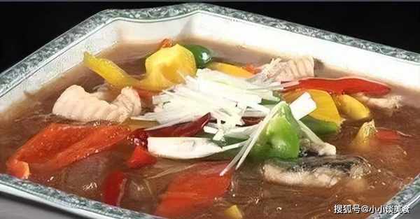 1.粉絲掰成小塊,用溫水泡軟。將凈鯉魚肉切成條狀。紅蔥頭切絲。將青椒和紅椒切成薄片。2、鍋內加入雞湯、甜面醬、料酒、醬油、糖色、豬油、蔥絲、精鹽,燒開後放入魚條稍煮。