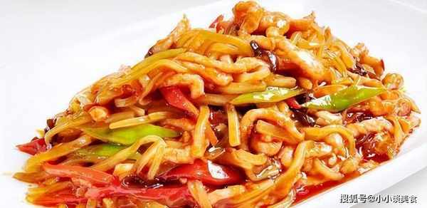 配料:鮮鯉魚肉300克,幹粉皮100克,青椒25克,紅辣椒20克,大蔥10克,甜面醬15克,料酒10克,醬油、糖色、豬油30克、雞湯600克、精鹽2克、香油10克。