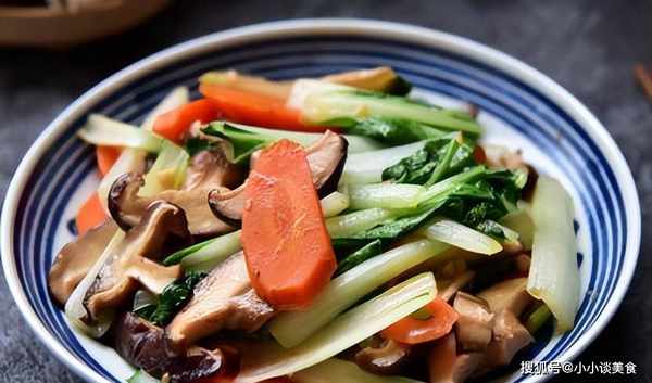 【材料】青菜300克,香菇200克,胡蘿卜1根,大蒜3瓣,鹽3克。