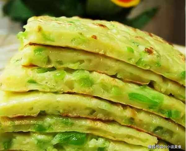 5、鍋裡放油,倒入攪拌好的面糊,用勺子把面糊抹平,蓋上鍋蓋,小火煎一面翻面,最後煎至兩面呈金黃色。中間取出,切塊。能