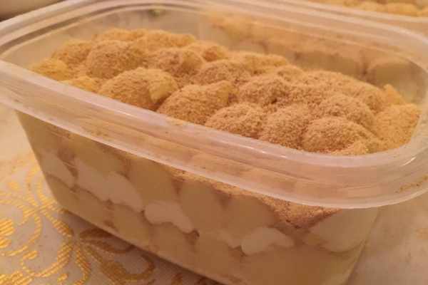 8、混合好的莫斯糊直接倒入模具中,放入並且冷藏過夜就完成瞭。