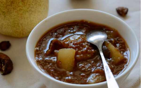 2、將雪梨羅漢果川貝放入燉鍋中,加入適量的水和少量的冰糖。