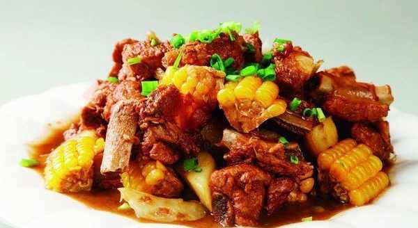 3.土豆。胡蘿卜切瞭滾刀塊,將玉米切成小塊,將土豆加入燉牛肉鍋中,蘿卜,玉米。