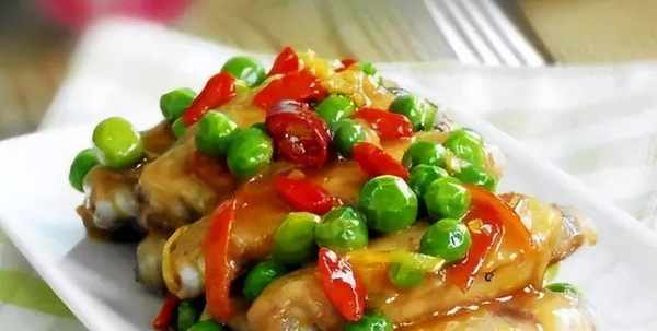 材料:雞翅8隻、油適量、鹽適量、四季豆1串、陳皮1片、冰糖適量、藥明適量、薑適量、紅辣椒3個、幹紅辣椒3條、料酒、花椒少許