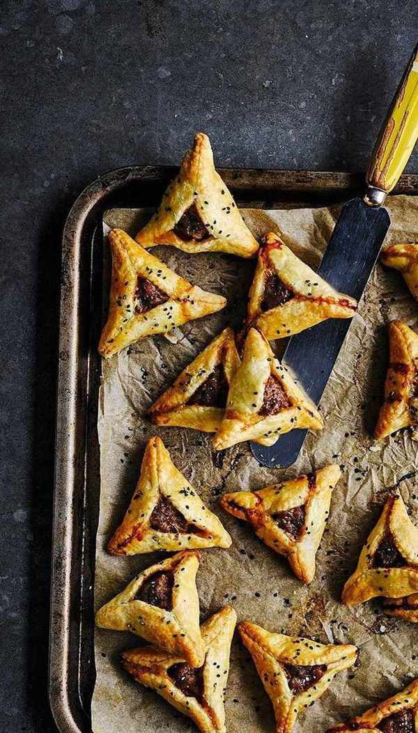 【做法】1、稱量面粉,加半茶匙鹽攪勻。用錫紙包住黃油(避免過熱融化),對著面粉直接擦成蓉,不時用黃油塊蘸一蘸面粉。將擦成蓉的黃油和面粉混合均勻,註意避免結塊。2、當黃油完全徹底的散進面粉中後,澆入100g冷水,用把餐刀攪拌到開始結成一塊兒,挪到面板上快速揉成團。不要揉過瞭,否則不容易起酥。用保鮮膜包好,冷藏至少30分鐘。3、預熱烤箱到200度,往烤盤上鋪兩張烤盤紙。從腸衣裡擠出肉,倒入五香粉、蠔油、海鮮醬和薑蓉徹底拌勻。4、在案板上薄薄撒上一層面粉,將酥皮搟到1元硬幣的厚度,用直徑10cm的餅幹卡子盡可能多的卡出圓來。將邊邊角角的再團一團(不要使勁揉否則會不起酥),再多卡出幾個。最後應該有18到20個。5、將內餡用勺子挖成差不多聖女果那麼大的丸子,挨個放到每張酥皮中間。在酥皮周圍刷一點蛋液,將三個邊疊進去,部分覆蓋內餡,變成一個三角形。將角捏到一起,頂上再多刷點蛋液,撒上芝麻。6、擺在烤盤上,送進烤箱烤25分鐘,烤到變成金棕色就出爐,留在烤盤裡放涼。