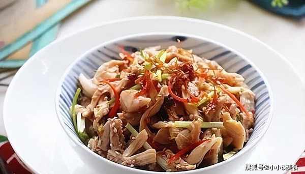 6.取出雞肉放涼,撕成小條,加入XO醬7.放香菜絲和辣椒絲