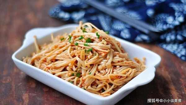 材料:金針菇300克、油、鹽、辣椒粉、醬油2湯匙、辣椒粉、辣椒粉