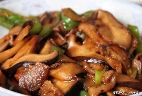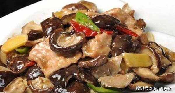 3.加入香菇拌勻。香菇中間有一點水也沒關系。繼續煎,直到香菇變軟並快速煮熟。加入肉塊、青椒和紅椒。根據個人口味加點鹽和雞粉。炒幾分鐘,直接下載。