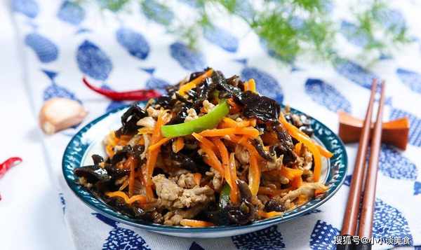 1、先將肉洗凈,用上刀切成0.5厘米的薄片,再用豎刀切成5厘米長的絲,盛入碗中待用。