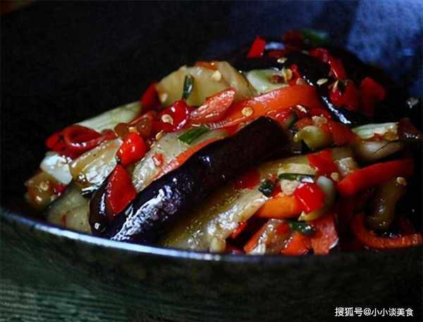 方法一。茄子洗凈,切條,用鹽水泡十分鐘撈出。