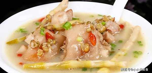 4鍋裡放水燒開,放入筍片,撈出,撈出過涼水,然後淋在豬腳上撈出撈出晾涼。水,然後是泡沫