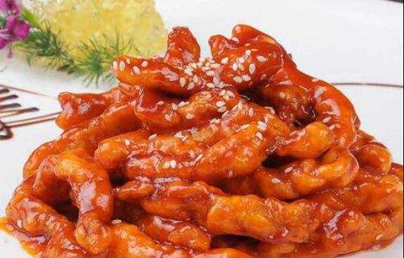 材料:裡脊肉200克、雞蛋1個、菜籽3粒、面粉、鹽、番茄醬、米醋、雞粉、糖、料酒、淀粉