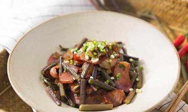 3、放入蕨菜,加料酒、生抽、精鹽、味精調味即可。