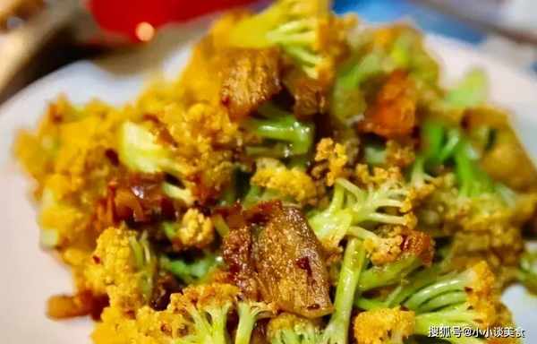 6.加入花菜翻炒均勻