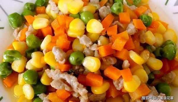配料表:豌豆、胡蘿卜、玉米、肉末、醬油、鹽、蒜頭、料酒、生抽