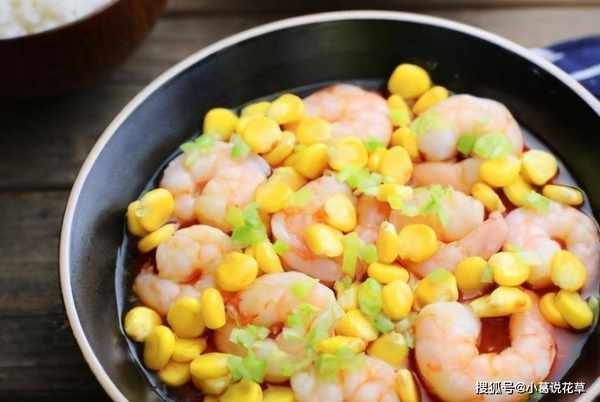 材料:雞蛋、蝦仁、熟玉米粒、洋蔥、鹽、生抽、香油