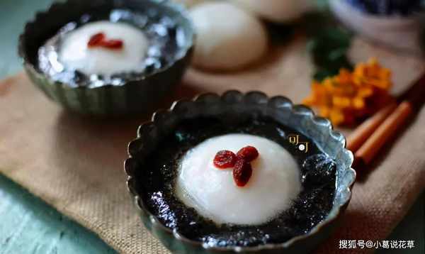 -材料-糯米塊2個(180克),黑芝餡60克、枸杞數粒(也可以換成糖桂花或省略)