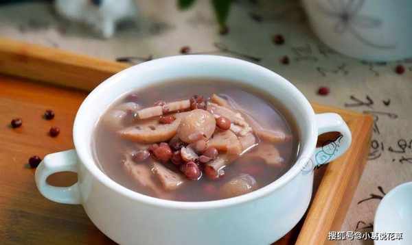 原料:紅豆50克,蓮藕150克,桂圓10克,當歸2片,生薑2片