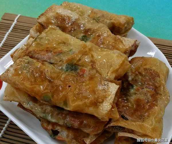 6.可以用面粉和水合上封口,依次進行。7、不粘鍋放油,油燒熱,放入豆腐卷炒至豆腐熟。用小火慢慢煎至兩面微黃。