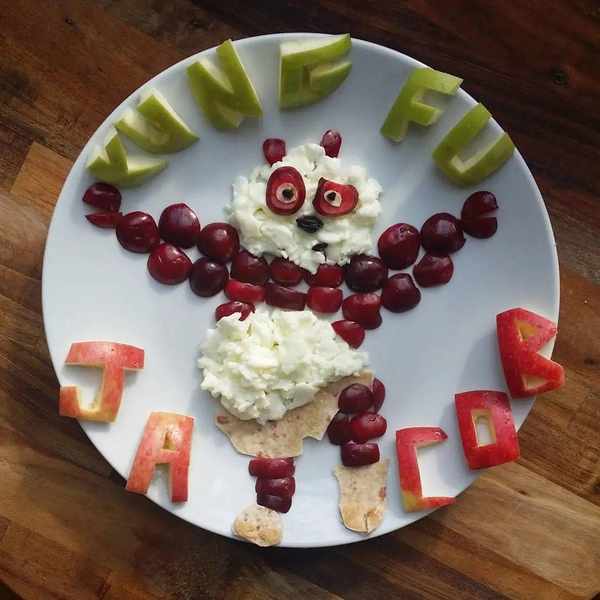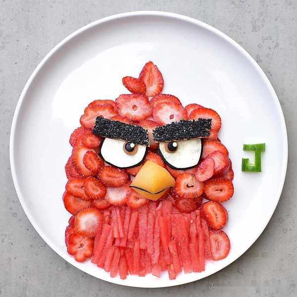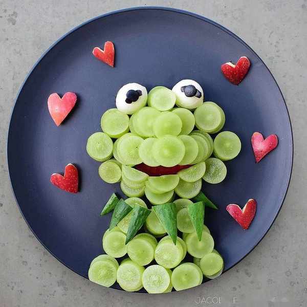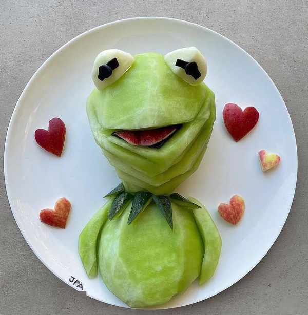 連飯後水果都發揮天馬行空的想象力,拼成小動物的模樣。