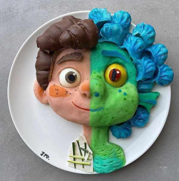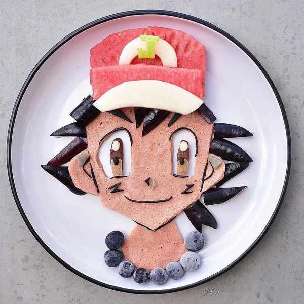 薄餅、西瓜、藍莓拼成的小智,加上意大利餃做的皮卡丘,就是一出飯桌版的《精靈寶可夢》~