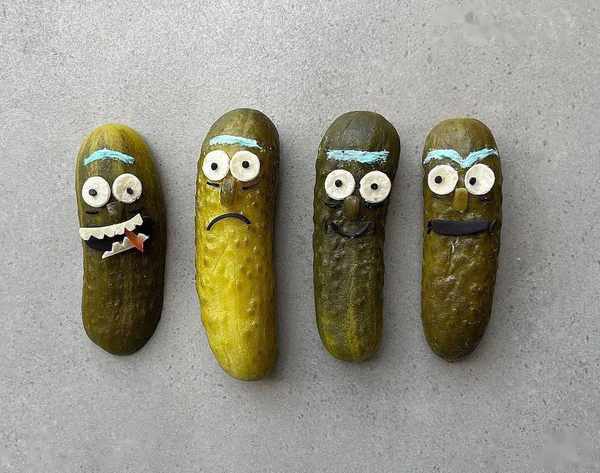 就連吃即食的泡菜黃瓜,也耐心地用白巧克力、芝麻粒擺出不同的表情。