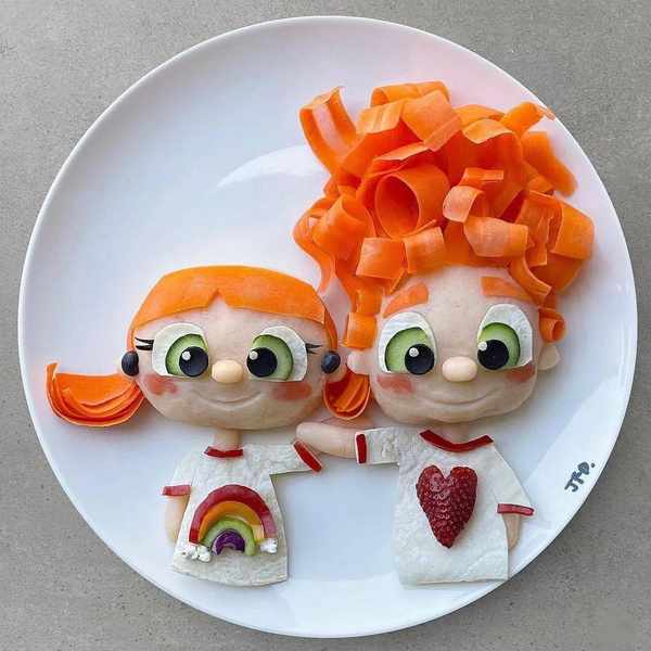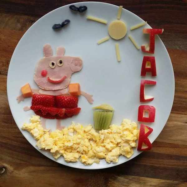 通過食物擺盤,引導兄妹倆和諧友愛的相處。