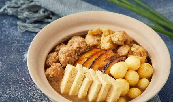 全傢福大雜燴一般有臘肉,肉丸,魚丸,豆腐等多種食材一起燉熟。