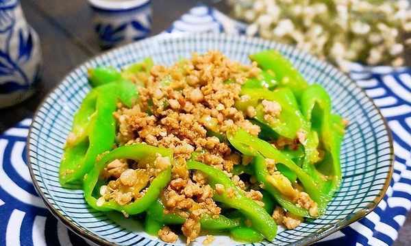材料:辣椒3個,豬肉餡200克,鹽2克,蠔油3湯匙,食用油適量