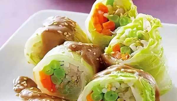 4、取做法1處理好的大白菜攤開,加入適量做法2的材料,再加入做法3的醬汁。