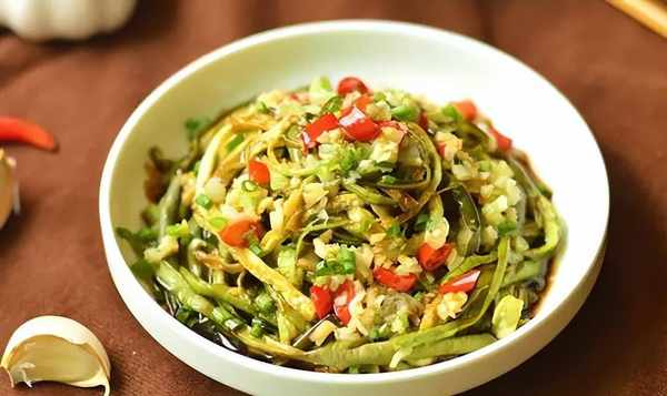 5、加入鹽、生抽、香油、醋再次翻拌均勻,即可裝盤。