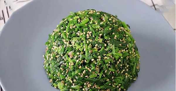 原料:菠菜一把,香油適量,鹽適量,白芝麻適量。