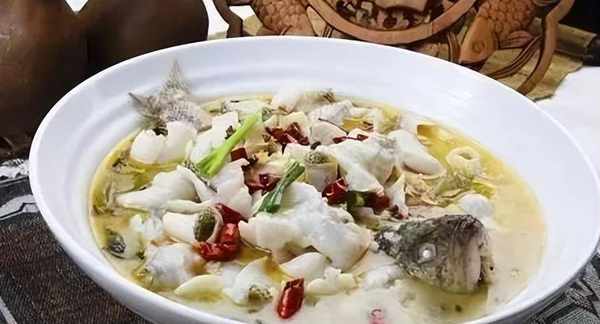 2.3分鐘後,放少許醬油、糖和雞精,開水澆在酸菜上,將酸菜撈出放入碗中,將魚片放入湯中,水開後關火,將湯和魚片倒入碗中。(溫馨提示:因為酸菜已經很咸瞭,就不用加鹽瞭)