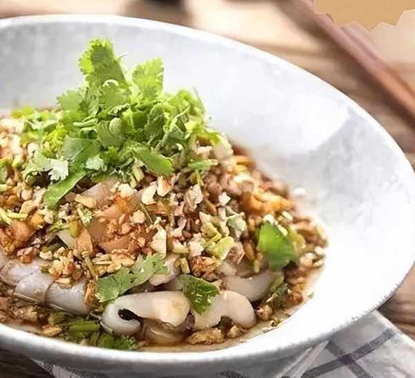5、喜歡辣味的可以再澆上一匙子辣椒油,拌勻後香辣酸甜的味道就出來瞭。