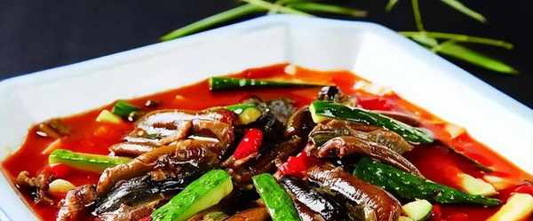 4。鍋內留底油,加入豆瓣醬、薑片、蔥花炒香,拌入湯汁,加鹽、糖、味精、雞精、醬油、料酒、胡椒粉調味,加入eel,lettuce,garlic烤耙很好吃,魚鉤二流,澆上紅油煮成菜。