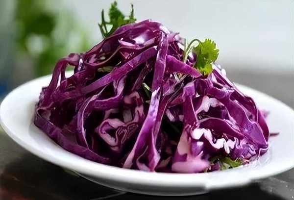 材料:紫甘藍,精鹽,調味粉,白醋,香菜