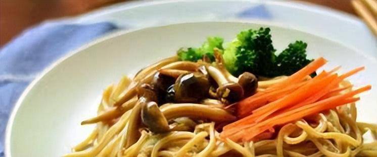 3。炒鍋燒熱油,爆香蒜蓉,加入蟹香菇大火翻炒,加入1茶匙生抽,炒香,盛出待用。 4。將泡好的面條撈出瀝幹,加入一茶匙香油拌勻,再加入1茶匙生抽、半茶匙香醋和少量糖。
