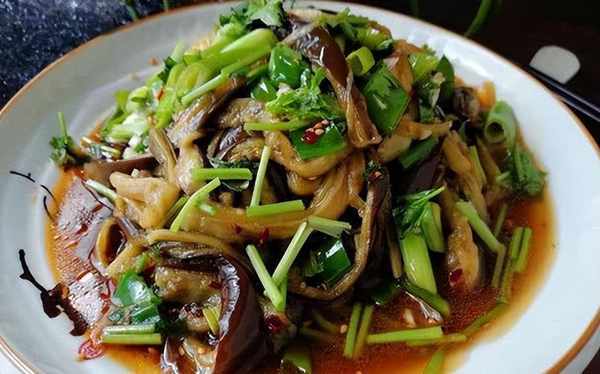 用料:長條茄子5個、蒜頭5瓣、小米椒2個、蔥少許、生抽2湯匙、香醋1湯匙、白糖2g、鹽1g、食用油20ml