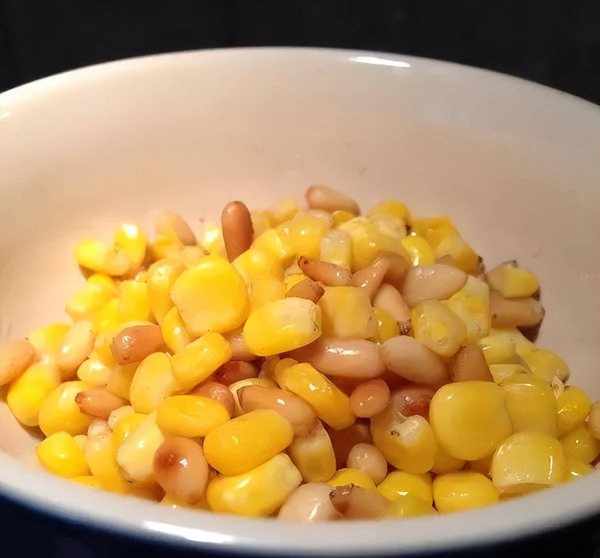 1、將方便包裝的玉米粒用水洗凈。倒出松子。