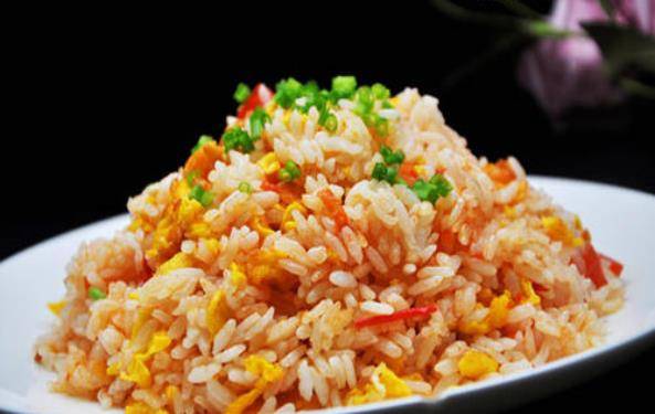 2、熱鍋燒熱油,先下西紅柿炒至出汁,再下剩米飯翻炒;