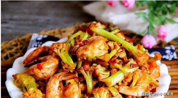 材料:花菜1個,蝦仁8隻,郫縣豆瓣適量,花椒適量。