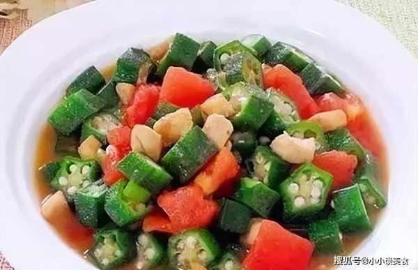 材料:秋葵、番茄、雞肉碎;