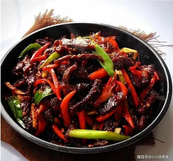 2、將紅燒牛肉、紅燒牛肉切成片,放入鍋中加入麻辣幹調料拌勻,裝盤擺盤。