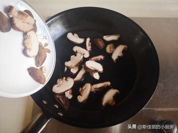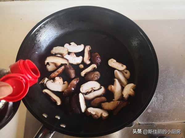 2. 燒熱鍋放入適量的油,將香菇放進鍋中翻炒至微微軟;