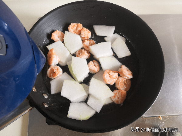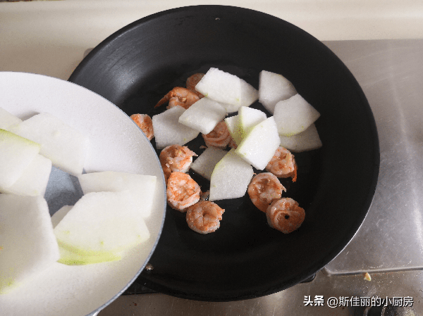 3. 加入冬瓜片進鍋繼續翻炒兩下;