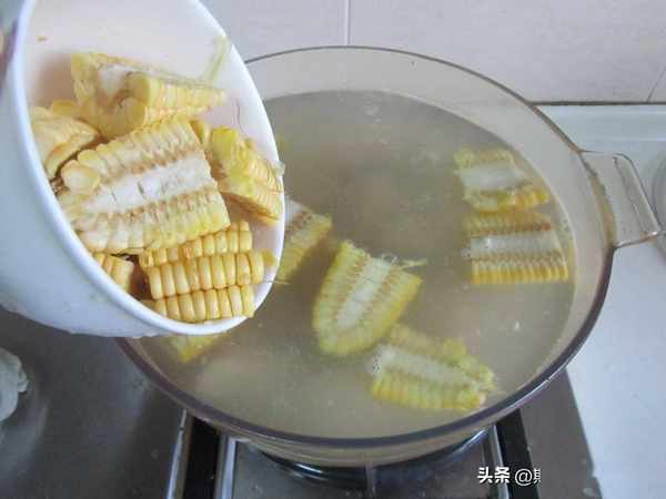 5. 加入準備好的玉米段;