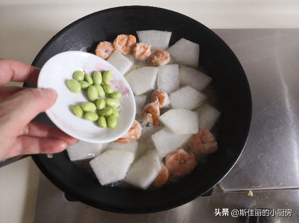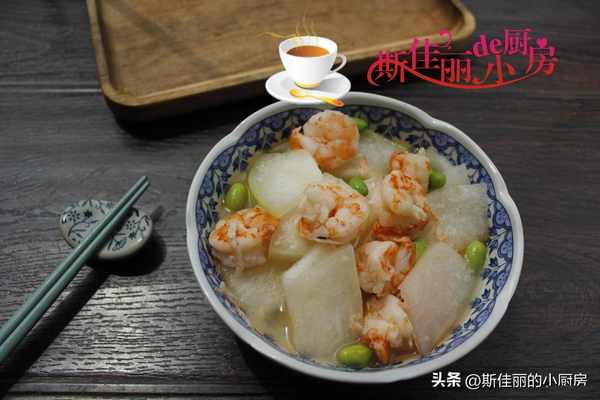原料: 冬瓜 鮮大蝦 毛豆米 料酒 淀粉 油鹽