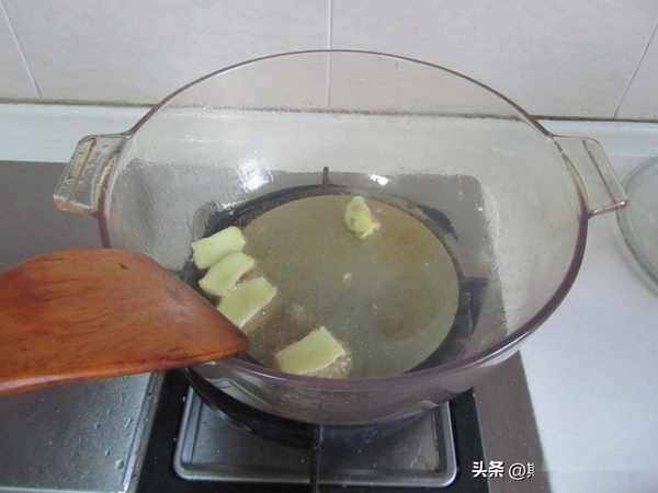 制作:1. 燒熱鍋放入適量的油, 加入薑片進鍋煸炒兩下;