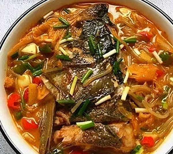食材:胖頭魚900克、辣白菜100克紅薯粉條100克、青紅椒2個大蒜30克、黃豆醬20克生抽醬油20毫升、精鹽3克食用油30毫升、香蔥2根薑15克、幹辣椒5個料酒30毫升、胡椒粉2克